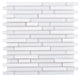 Linear Series: Linear Victory New 11.75 x 12. Volakas marble mixed with white glass in offset layout pattern.Suggested Grout Color: Bostik Dimension Diamond H600 Collection Linear Glass Type Mosaics Material Glass Thickness 3/8 in (8.00 mm) Weight 3.50 Lbs Country of Origin Asia Look Linear Finish N/A Color White