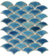 Dragon Scale Ocean 9.75x12 - White with decorative Blue porcelain mosaic in a Dragon Scale pattern.